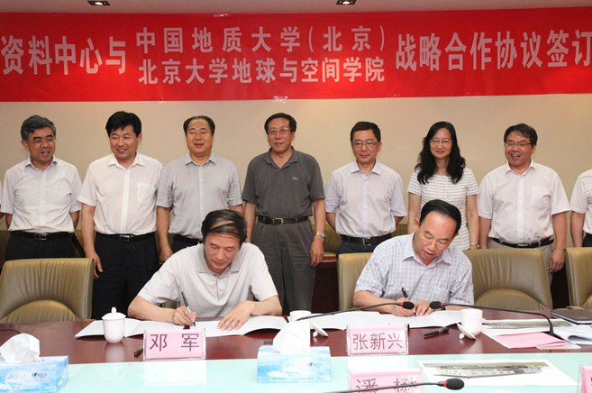 签约仪式上,实物中心主任张新兴分别与中国地质大学(北京)校长邓军、北京大学地空学院院长潘懋签署战略合作协议。实物中心与地大(北京)、北大地空学院具有良好的合作基础,近年来在地质与管理人才培养、科技项目实施等方面均有密切合作。本次战略合作协议的签署,标志着实物中心与两所高校将在地质科学研究、人才培养、学术交流、教学实践及科普教育等方面进一步深化合作,达到优势互补、共赢互惠、共同发展的目标。