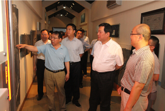 王晓东等领导先后到科普长廊、地球资源展厅、岩心库及标本园参观视察。期间,实物资料中心党委书记许庆丰详细介绍了中心基本概况及业务发展成果等情况,中心副主任颜世强介绍了馆藏资源及社会化服务情况。