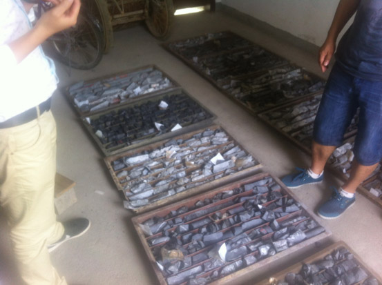 2015年7月9日,在贵州省天柱县美郎-亚进重晶石矿区,地调局实物资料中心技术人员带领贵州省地质资料馆及贵州省地矿局101地质大队技术人员进行实地筛选岩心,通过野外查看岩心保管情况,查阅原始地质资料等方式,综合考虑每个钻孔岩心的典型性、代表性、特殊性等,将矿区形成的15个钻孔分别划分为I、Ⅱ、Ⅲ类实物地质资料,并模拟进行了实物地质资料汇交、接收、验收、处置、备案等整个资料管理流程,这是实物资料中心开展实物地质资料管理新政策与新方法试用调研工作的一幕。