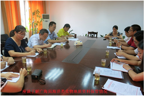 2015年7月15日至18日,实物资料中心技术人员前往广州海洋地质调查局,就海洋类实物地质资料的规范化保管进行了深入交流。