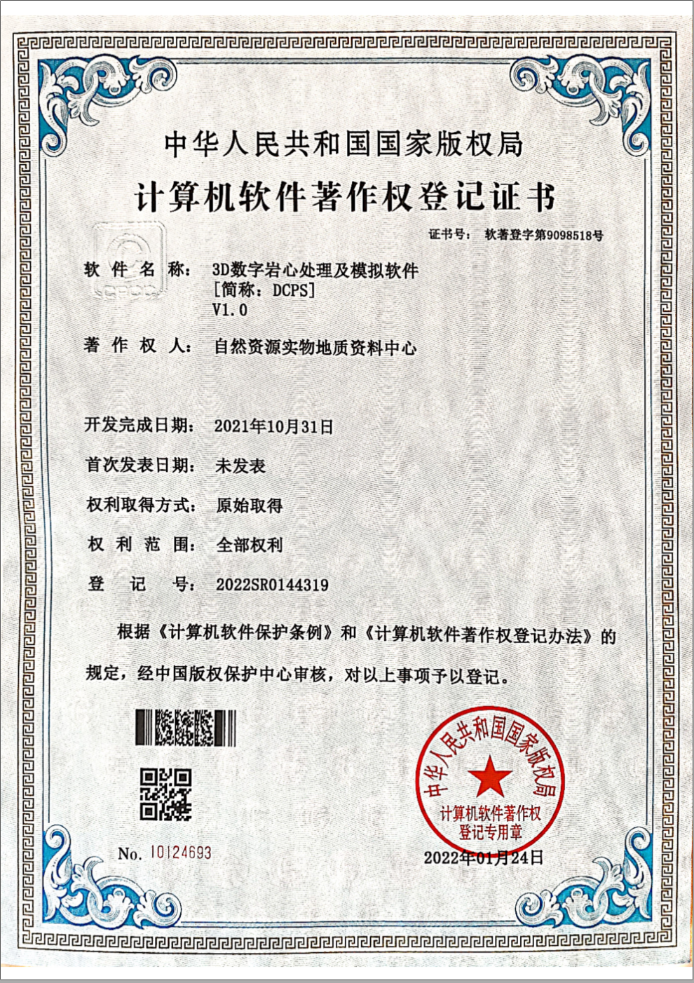 近日,中国地质调查局自然资源实物地质资料中心岩心数字化团队连获《岩石颜色定量化识别软件》《3D数字岩心处理及模拟软件》《电测深反演批量快速处理软件》三项软件著作权。