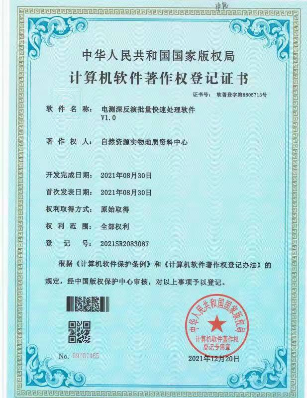 《电测深反演批量快速处理软件》(证书号:软著登字第8805713号)主要进行电测深数据批量反演快速处理,该软件主要包含数据信息查看功能和后台优化功能,能够实现数据的自定义导入导出,通过软件中间层对数据进行合法校验,可有效解决行业软件同其他软件间的数据融合问题。
