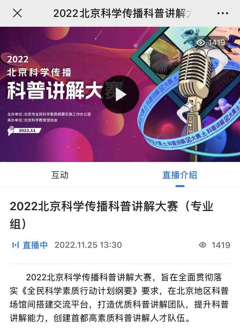 在经历了线上直播、线上视频、线下实操等演练模式的重重选拔后,实物资料中心选手突出重围进入总决赛。总决赛分为自主命题讲解、随机命题讲解、科技知识问答三个环节,皆以视频直播的形式进行。自主命题讲解环节,以《“海百合”的前世今生》为题,生动地讲解了“海百合”的分类、化石研究意义、生存环境等内容,讲解流畅自然,表达形象生动;随机命题讲解环节,以《北京四合院》为主题,形象地讲述了北京四合院的由来、历史、风格,展现了优秀的科普讲解技能;科技知识问答环节,用时2分钟回答了10道专业科技知识问答题目,得到了专家评委的充分认可。
