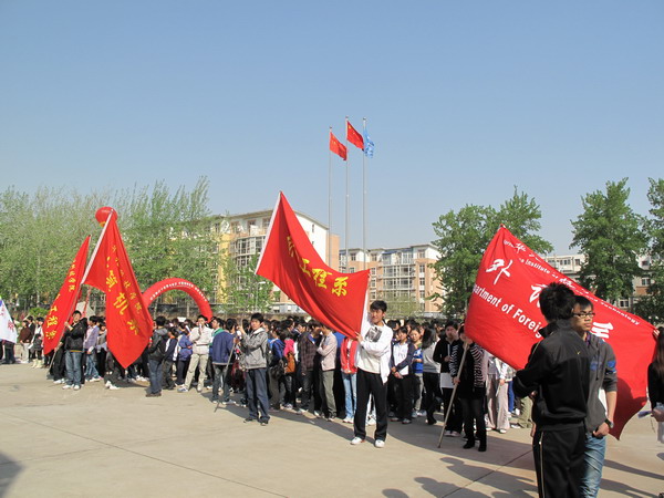 实物中心广场参加活动的同学们