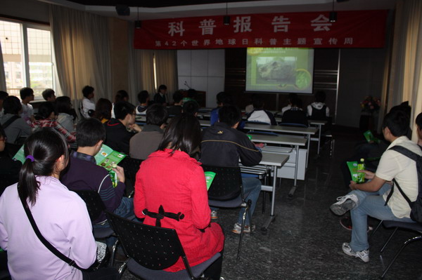 学生在认真听科普报告会