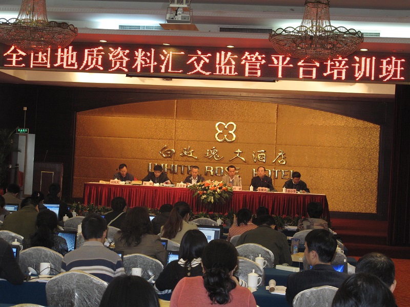 2011年10月26日至29日,全国地质资料汇交监管平台培训班在武汉召开。会议由国土资源部储量司地质资料处处长刘斌主持,湖北省国土资源厅副厅长王友章、中国地质调查局总工室信息资料处处长陈辉、全国地质资料馆副馆长张新兴及副总工胡小平、国土资源实物地质资料中心副总工刘凤民出席培训班并讲话。