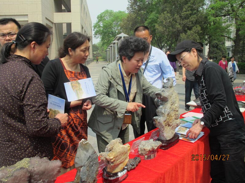 为丰富“第46个世界地球日”活动形式和内容,实物中心和北京大学地球与空间科学学院联合举办校园科普活动,2015年4月27日,科普队伍一行8人奔赴北京大学,进行了为期一天的实物地质资料科普展。