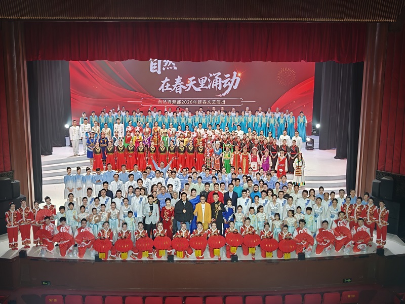 新春将至,自然资源部《自然在春天里涌动》新春文艺演出在北京地质礼堂隆重举行,实物资料中心老年舞蹈队携原创蒙古舞《莫日格勒河》再度受邀登台献艺,中心纪委书记何宗家同志亲临现场观看,共迎佳节、共赏华章。