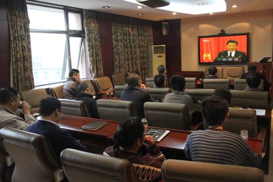 10月18日上午9时,中国共产党第十九次全国代表大会在北京胜利召开,实物资料中心会议室座无虚席,全体中层以上工作人员聚精会神收看党的十九大开幕会直播,认真聆听习近平总书记所作报告。