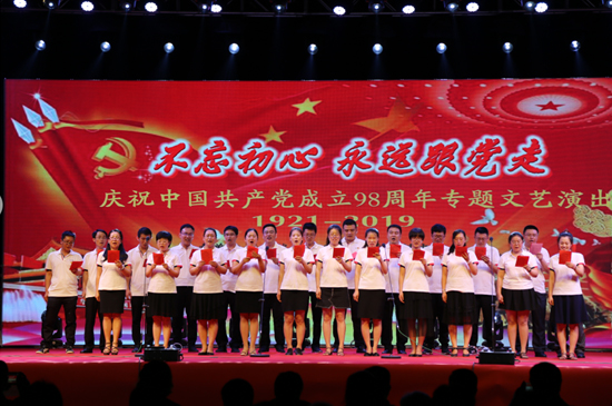6月27日晚,自然资源部中国地质调查局实物资料中心为庆祝建党98周年,与三河市文化广电旅游局联合举办了“不忘初心,永远跟党走”专题演出。中心在职职工、离退休职工及家属观看了演出。