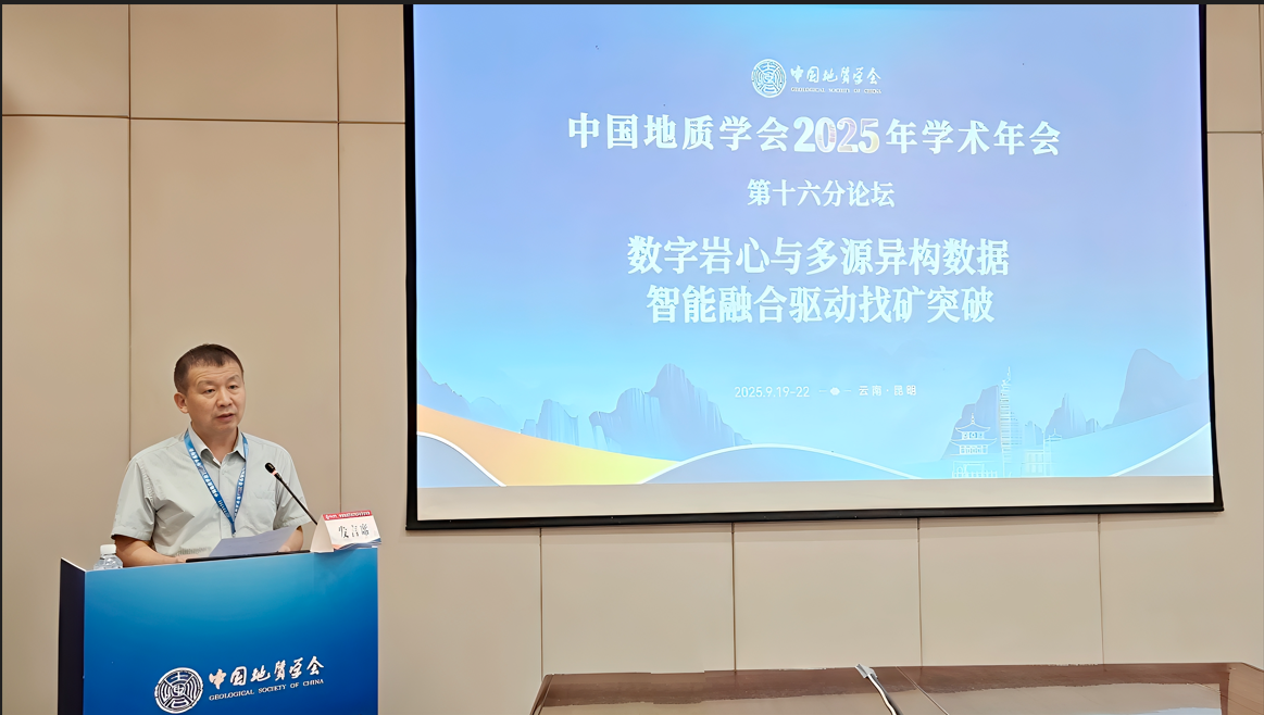 会议期间,实物资料中心承办了数字岩心与多源异构数据智能融合驱动找矿突破分会场。中心主任、党委书记马伯永在分会场致辞中强调,岩心作为地球深部信息的战略资源,是破解地质演化密码、支撑国家能源安全与生态文明建设的关键载体,近年来,中心依托丰富馆藏资源,以“数字岩心与多源异构数据智能融合驱动找矿突破”为核心,借助人工智能等技术破解岩心数字化瓶颈、构建数据融合生态、释放新动能,推动岩心赋能找矿突破与地质事业高质量转型升级。岩心数字化室副主任孙华峰就多源数据融合建模及找矿应用展开深入阐述,与会专家围绕岩心数字化全链条技术突破与创新应用、数字化仪器研发、多参数协同采集等核心议题开展了30场专题汇报,针对高光谱矿物识别系统构建起“光谱-矿物-成因”关联模型、智能算法的高精度CT重构技术实现岩心三维结构的微纳米级解析以及创新性开发多模态数据融合平台破解重大地质问题等方面开展了深入交流。