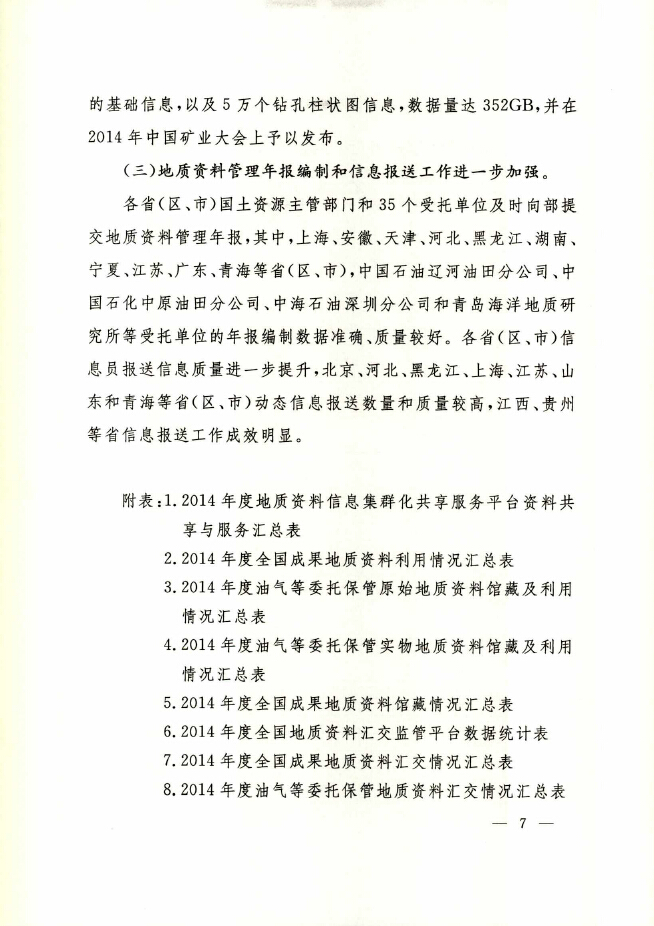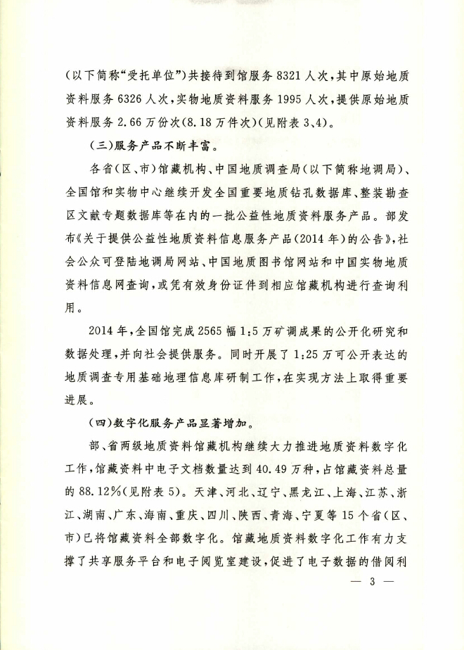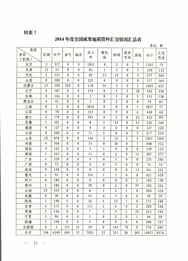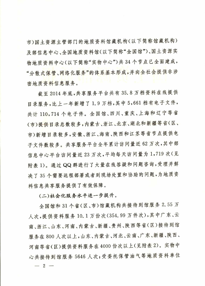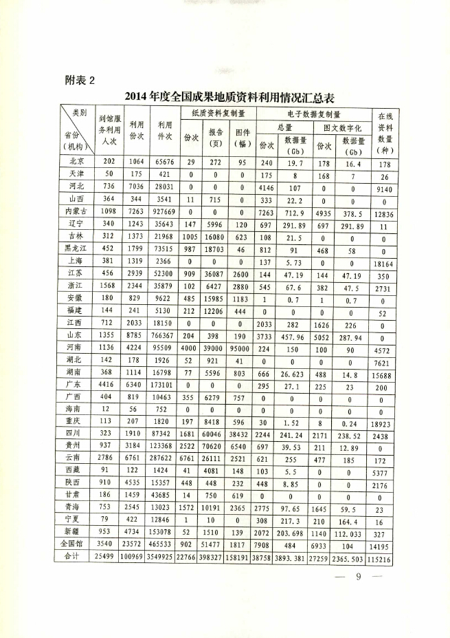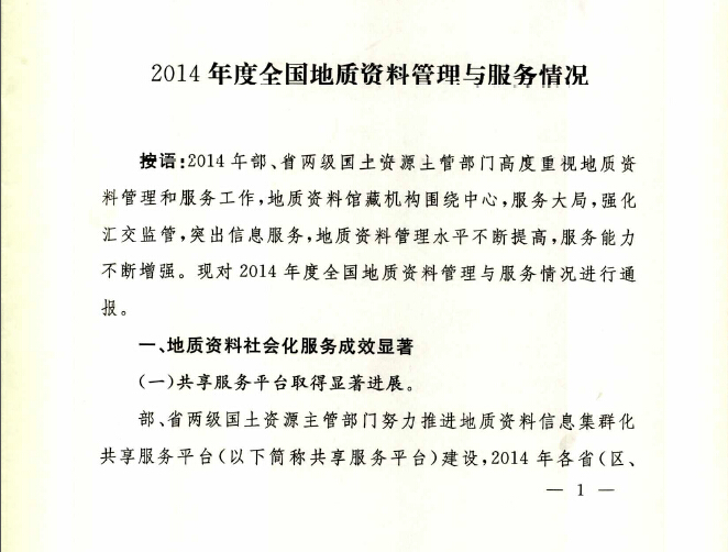 2014年度全国地质资料管理与服务情况