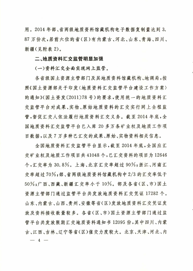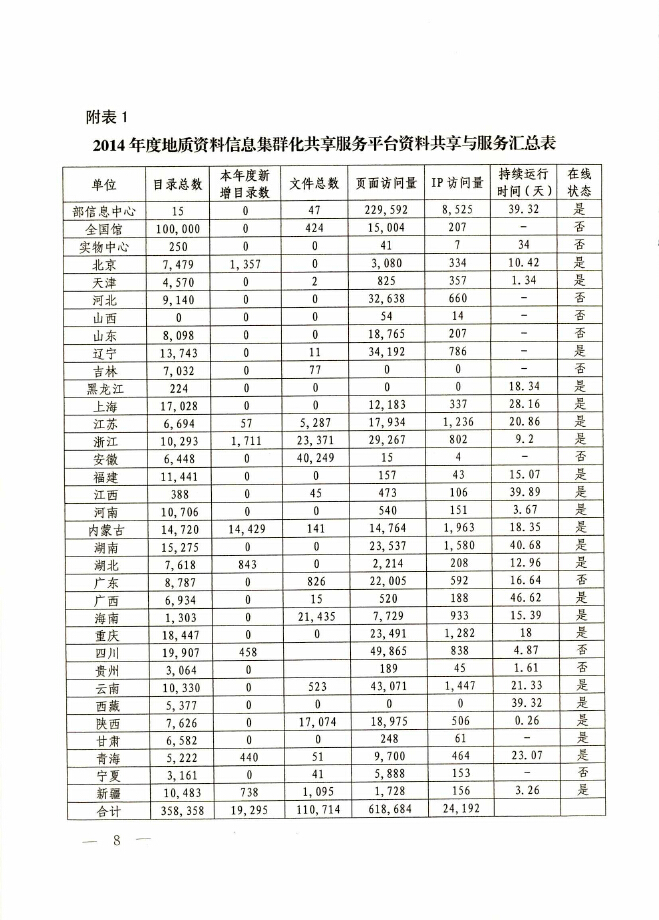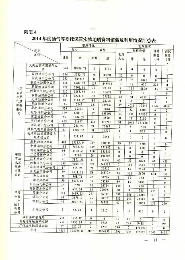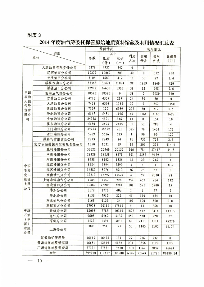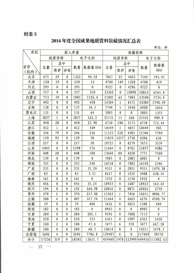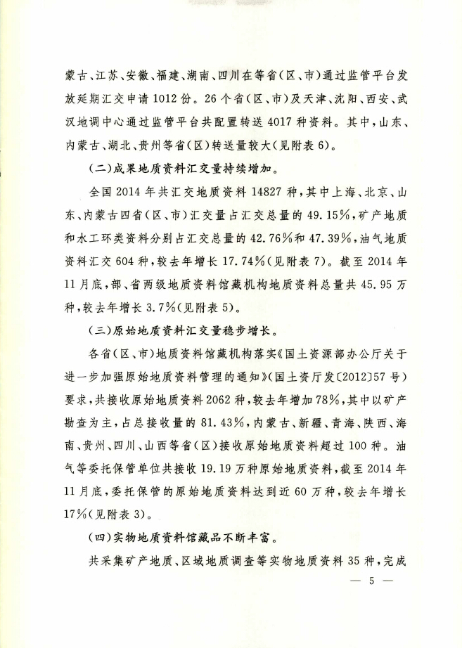 2014年度全国地质资料管理与服务情况