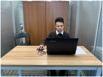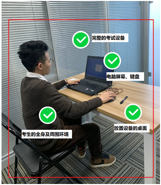 (4)考生应参照说明书中《智考云在线考试规范》的要求,调整好摄像头的拍摄角度和身体坐姿,并确保上半身能够在电脑端的摄像范围中,拍摄角度应避免逆光。